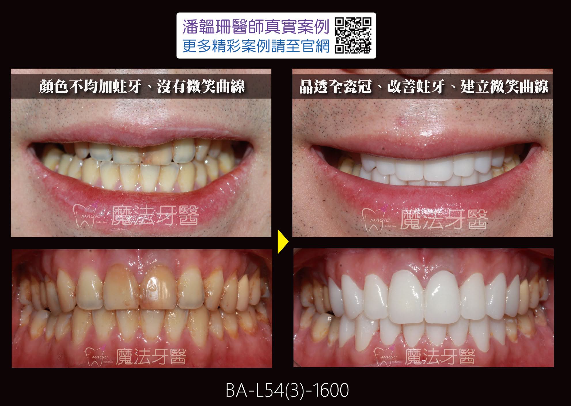晶透全瓷牙冠重建案例|改善牙齦外露、暴牙、牙色不均